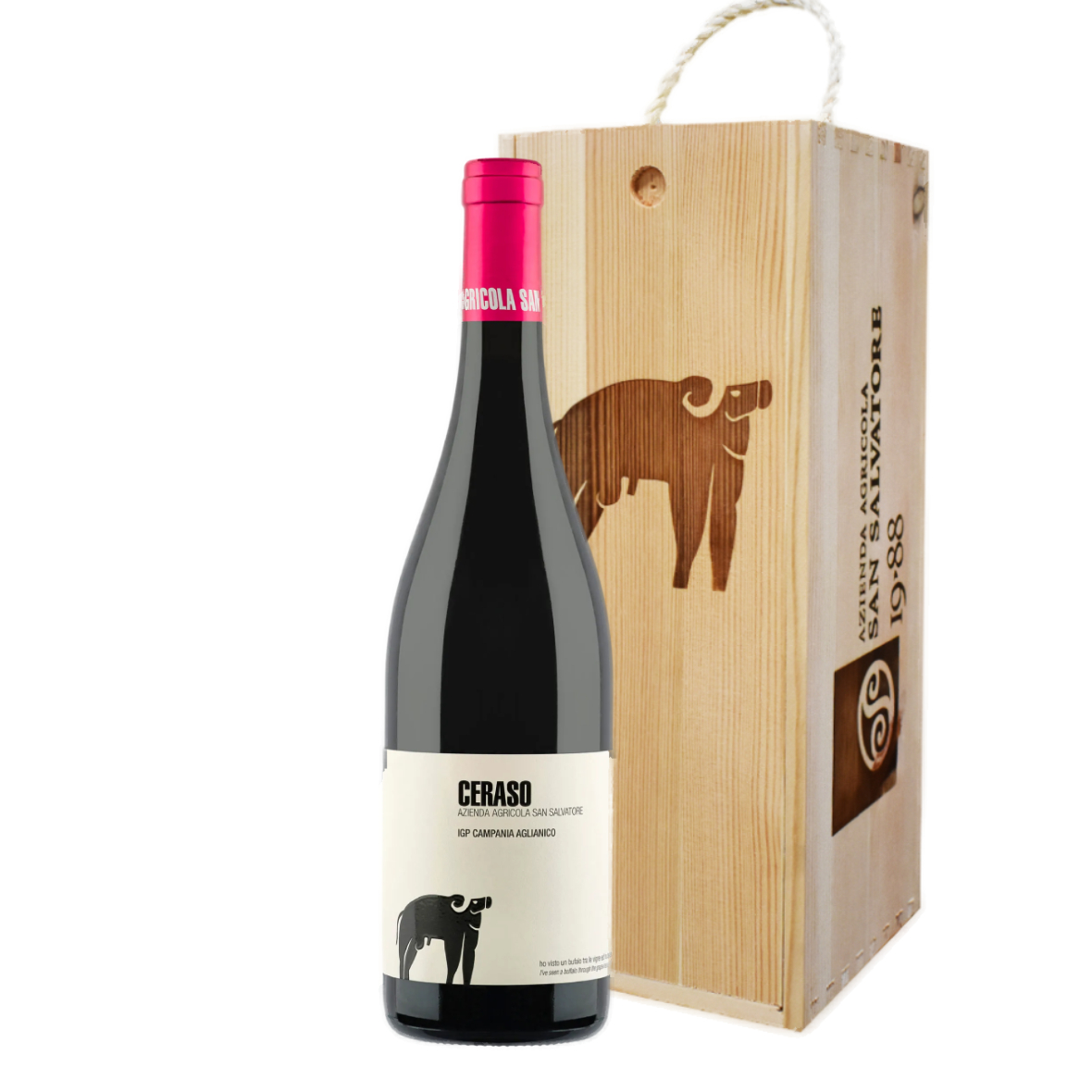 Soltanto aglianico maturato in acciaio per otto mesi. Le uve vengono selezionate e raccolte a mano in piccole cassette, poi vinificate con pressatura soffice, fermentazione in serbatoi di acciaio e macerazione a bassa temperatura. Ceraso è un vino elegante, persistente. La vinificazione delicata e un affinamento solo in acciaio regalano un rosso armonioso e morbido, capace di conservare una piacevole verve giovanile, ed un sorso caratterizzato da una intensa mineralità.